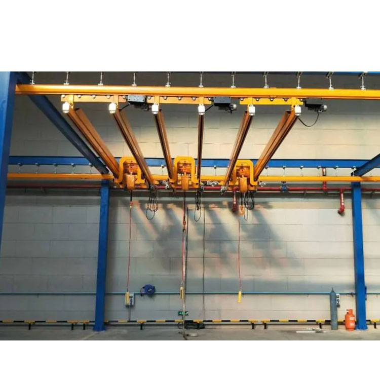 JKBK-D柔性單軌懸掛起重機(jī)應(yīng)用廣泛、功能出眾。由于所有部件都能任意地組合在一起,因此軌道走向能夠根據(jù)客戶車間的建筑情況靈活布置,以滿足生產(chǎn)加工中特定產(chǎn)品和工作位置的特殊要求。JKBK-D單軌吊的走向布置靈活:從簡(jiǎn)單的手動(dòng)控制的直線軌道,直至具有大量分支的、半自動(dòng)的和全自動(dòng)化控制的環(huán)形軌道。